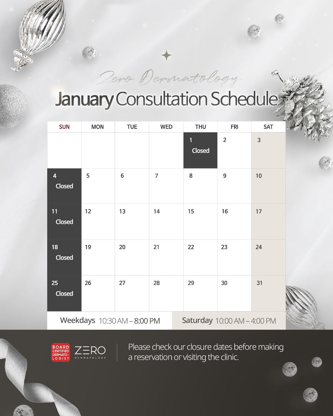 January Schedule — ZERO Dermatology